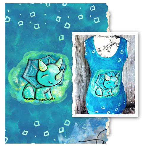 Bio Jersey - Panel Dino Tiny - Eigenproduktion - Türkis - 180cm