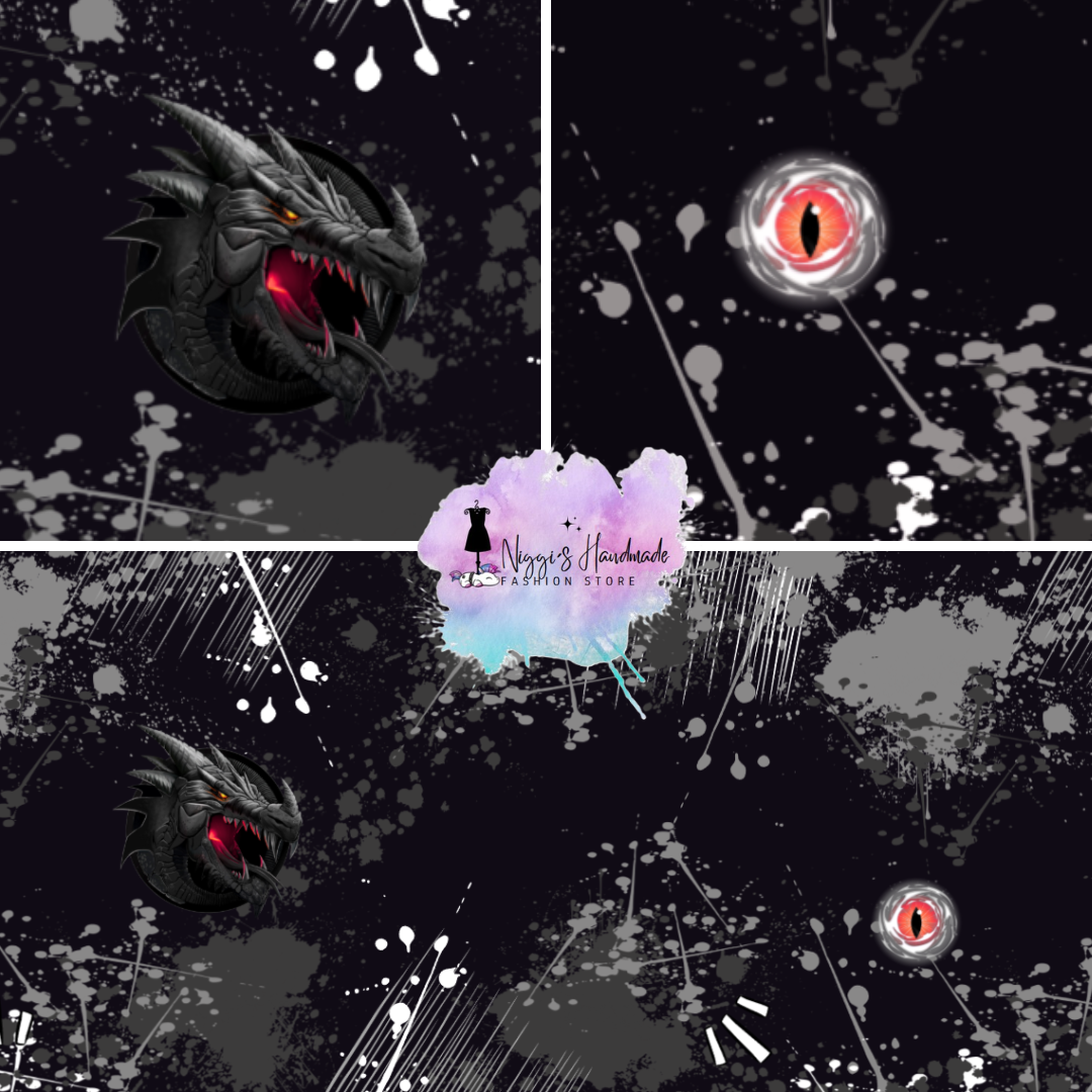 VORBESTELLUNG!!! French Terry - Panel Dragon Eye - GOTS Eigenproduktion - Anthrazit - 180cm