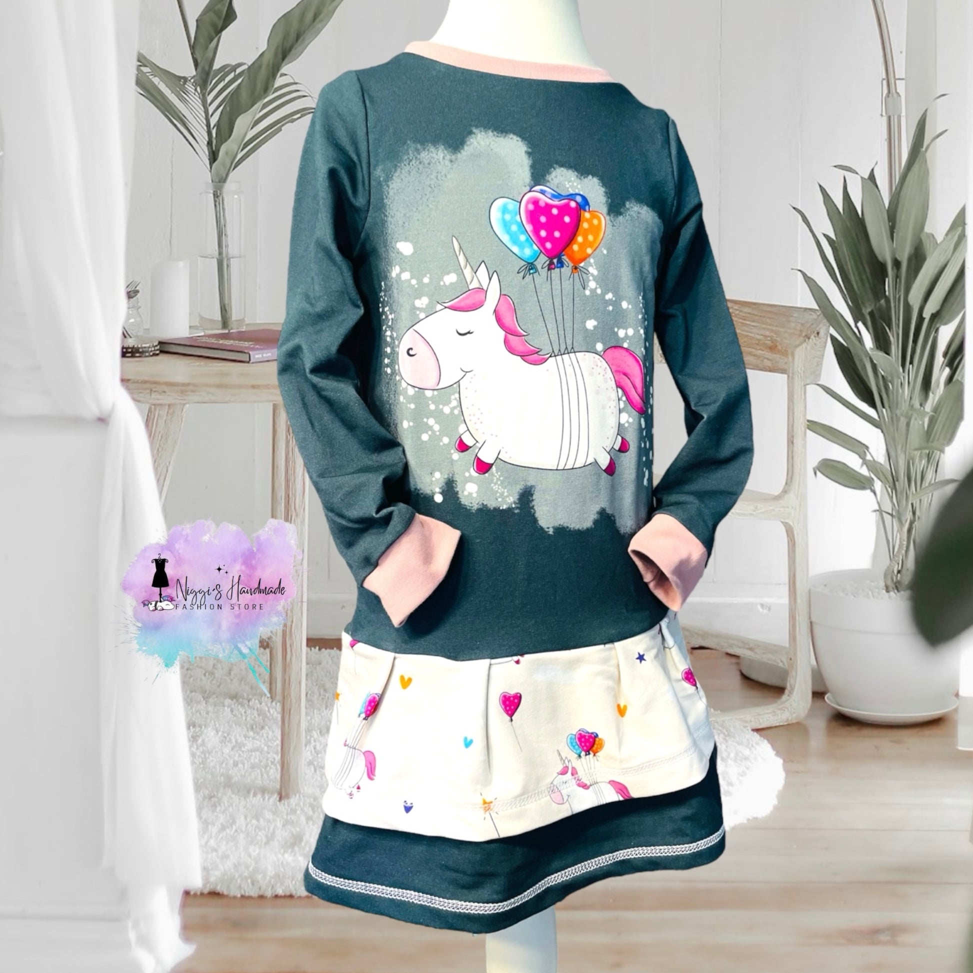 Unser PummelHorn Bio French Terry Pullover mit Volant aus der „Kinder Gr. 110-128“ Kollektion von Niggi´s Handmade ist ein echter Hingucker! In Größe 110 gefertigt, kombiniert er nachhaltige Stoffe mit einem zauberhaften Einhorn-Motiv – perfekt für kleine Fans, die Magie lieben.